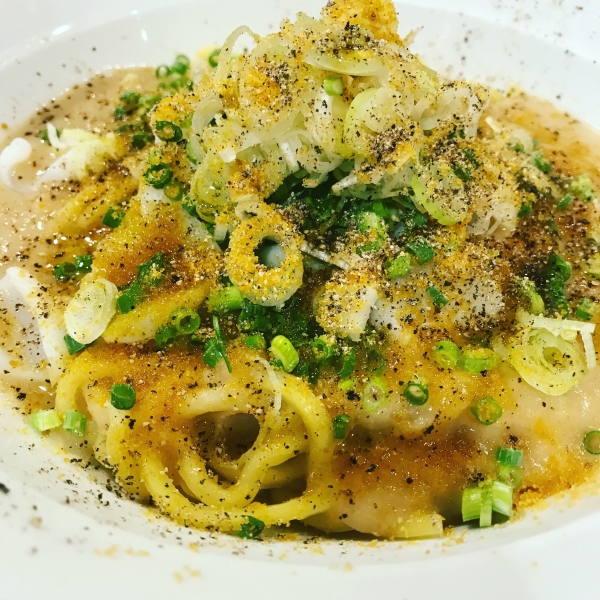 白いんげん豆をペースト状にしこちらをソースにしたまぜそばです。
