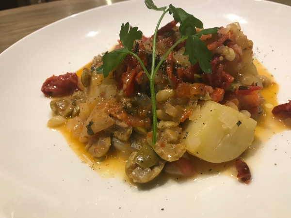 ドライトマトや松の実等も一緒に煮込んでおり旨味があり優しい味わいの煮込み料理となっております。
